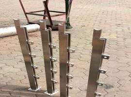 不銹鋼穿管立柱。柱身有穿管卡子,常見(jiàn)是4個(gè)穿孔,一般穿12mm、14mm、16mm、19mm的小管。