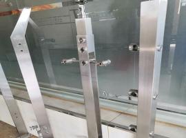 不銹鋼掛玻璃立柱。使用不銹鋼玻璃掛件、不銹鋼玻璃夾對(duì)玻璃進(jìn)行固定,一般夾8mm ~ 12mm的單片鋼化玻璃?;蛘邐A膠鋼化玻璃,尺寸視圖紙而定。
